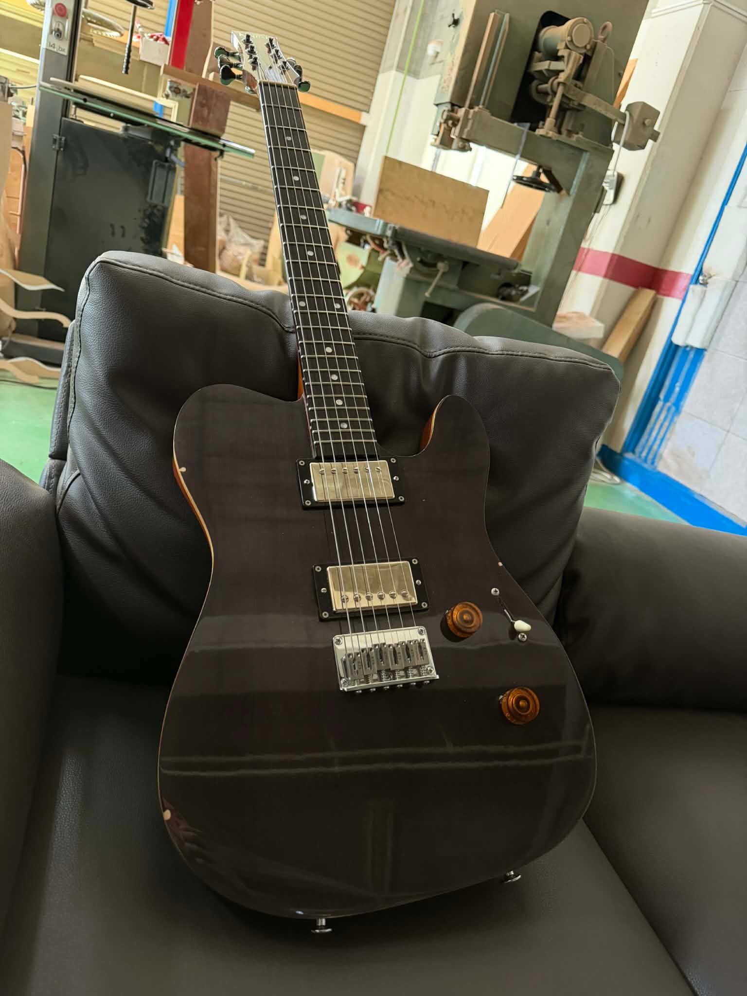 トップには2ピースのハードメイプルをラッカー仕上げのシースルーブラック。